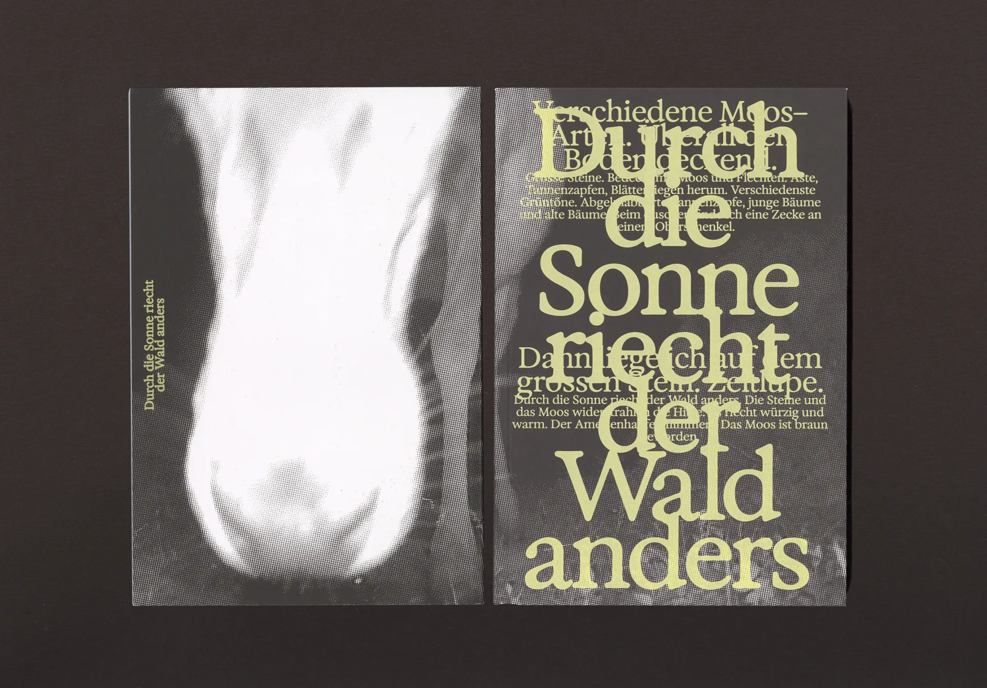 Diese Arbeit ist eine Publikation über den Schutzwald hinter dem Haus meiner Grosseltern. Das Haus «Weid» steht im Haslital oberhalb des Dorfes «Boden» und gehört zur Gemeinde Guttannen. Im Prozess der Publikation verbringe ich immer wieder Zeit im Wald. Ich komme in den Austausch mit Mensch und Natur und halte fest, was ich sehe. Dabei lerne ich nicht nur den Wald und seinen Charakter anders kennen, sondern auch die Menschen, die mit ihm in Berührung sind.