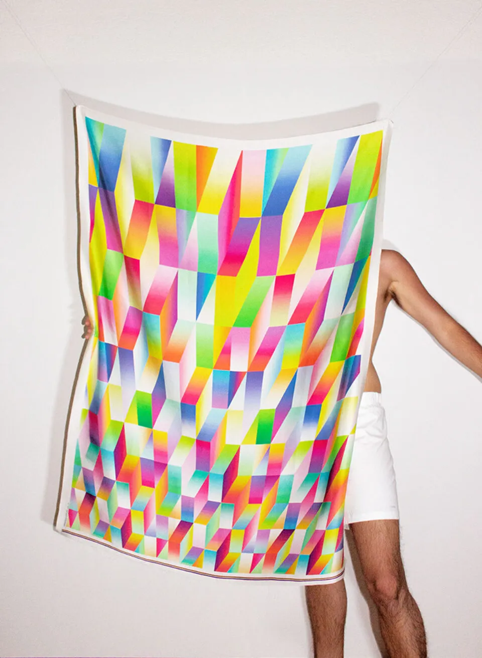 How can design reinforce the relationship between the textile and the viewer? Starting from this question, the collection RE:SEE addresses the theme of changes in perspective. The collection seeks to find design ideas for how looking at textiles can be shaped into a conscious act. Through their design the textiles encourage repeated discovery in that the motifs only become apparent when viewed from particular angles. This effect lies in the anamophoses and halftones, which are applied to the textile using inkjet printing and jacquard knitting. The collection not only obliges the viewers to position themselves spatially vis-à-vis the textile but also to rethink our own attitudes towards textiles.