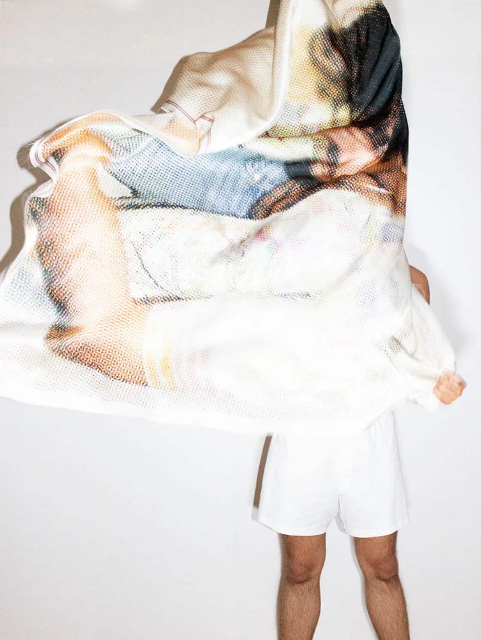 Wie kann das Design die Beziehung zwischen dem Textil und der Betrachter:in stärken? Ausgehend von dieser Frage, thematisiert die Kollektion RE:SEE den Perspektivenwechsel. Die Kollektion sucht nach gestalterischen Ideen, wie die Betrachtung von Textilien als ein bewusster Akt gestaltet werden kann. Die Textilien regen durch ihre Gestaltung zum mehrmaligen Entdecken an, indem die Motive erst aus bestimmten Standpunkten erkennbar werden. Hierfür dienen Anamorphosen und Rasterungen, die mittels Inkjetdruck und Jacquard-Strickerei auf das Textil übertragen werden. Die Kollektion fordert die Betrachter:in damit nicht nur auf, sich dem Textil gegenüber räumlich zu positionieren, sondern auch die eigene Haltung zum Textil zu überdenken.