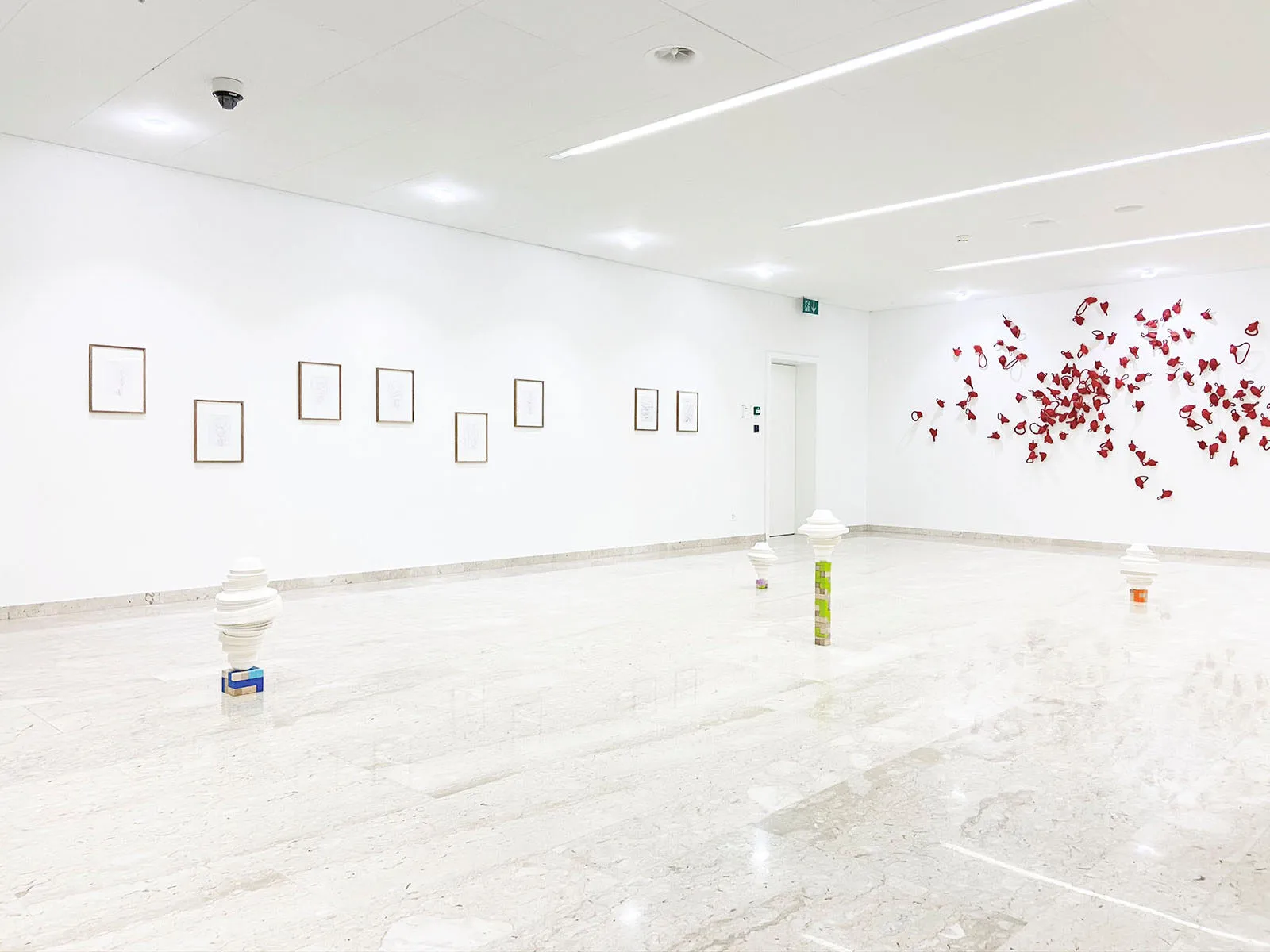 Mithilfe technischer Mittel erstrebt Antonie Schnider (*1997, Thun) im Dialog zeichnerisch-malerischen und plastischen Arbeitens nahbarste Erfahrbarkeit von Bewegung in Raum und Zeit erzeugen zu können. In ihrer Arbeit TRANSMISSION stellt sie Zeichnung und Skulptur einander gegenüber. Die Arbeiten kennzeichnen sich in ihrem Aufbau, durch sich wiederholende, in ihren Radien variierende Kreisbewegungen, deren Umrisse als kreisende auf- oder abwärtslaufende Bewegungen empfunden werden können.