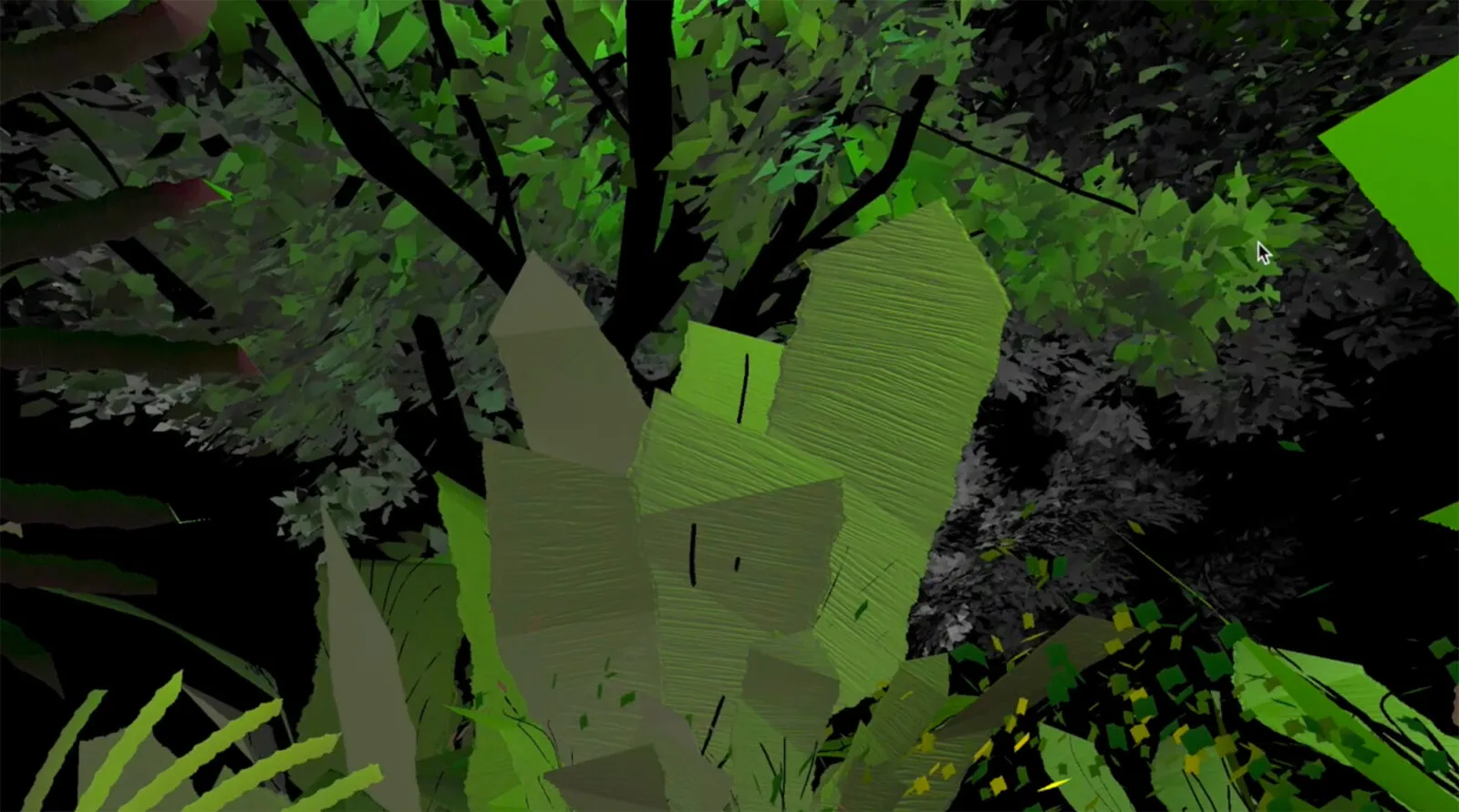 Die Arbeit ist eine räumliche virtuelle Erzählung, welche mit einem VR Headset erlebt wird. Dadurch steht man mitten in der Szene drin, kann sich durch den Raum bewegen, mit dem Umfeld interagieren und Klänge räumlich orten.