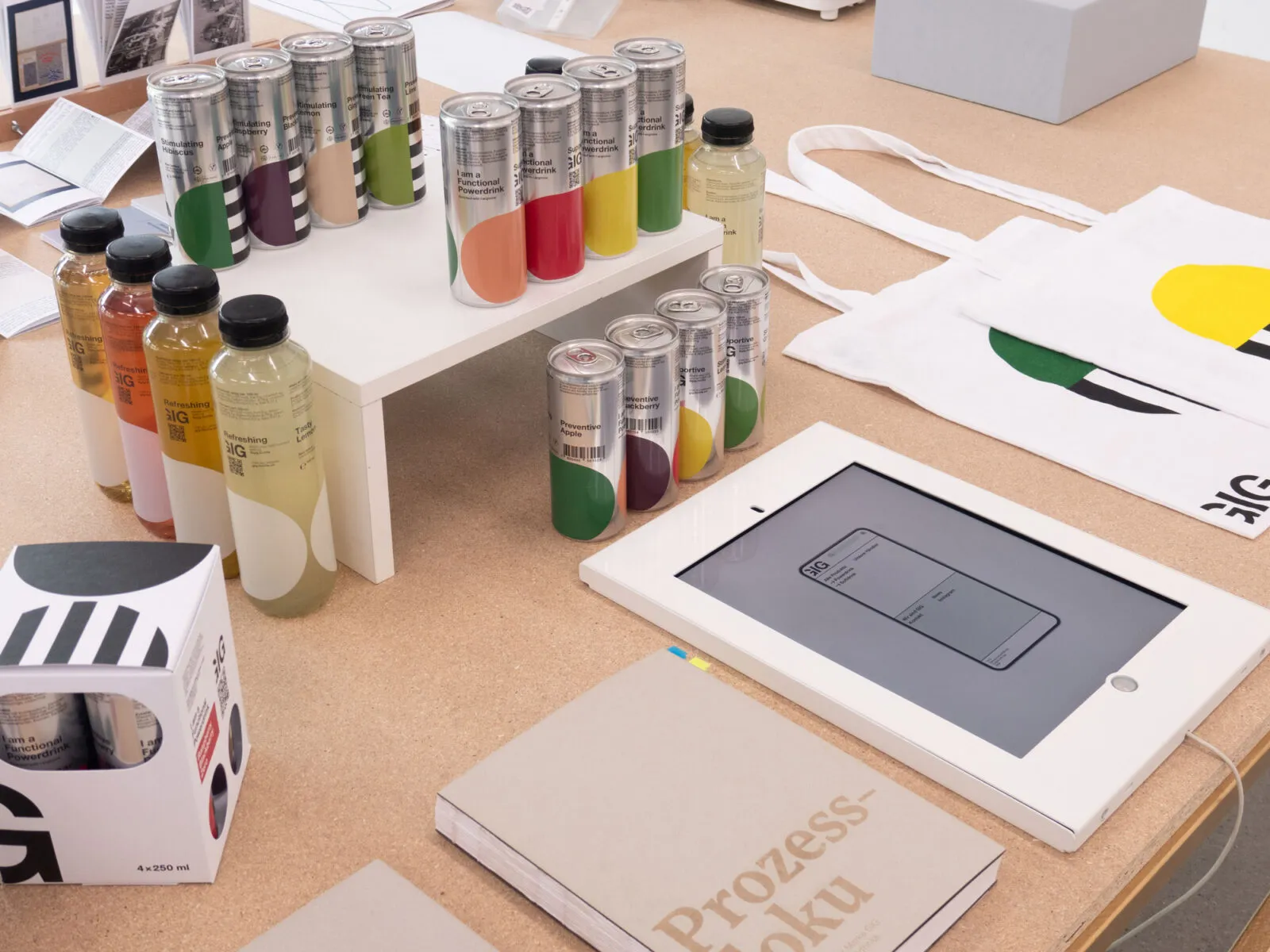 Die Marke GIG plant mit ihrem Powerdrink und einem neuen Softdrink in die Märkte Schweiz, Deutschland, Frankreich, Italien und Österreich einzutreten. Für dieses Vorhaben wurde ein neues Erscheinungsbild entwickelt, das sich auf das Verpackungsdesign und den Webauftritt konzentriert. Das Gestaltungskonzept verzichtet auf stereotype Darstellungsformen der Getränkeindustrie, um sich von der Konkurrenz abzuheben. Es zeichnet sich durch ein innovatives Raster aus, das die übliche Aufteilung in Vorder- und Rückseite aufhebt, sowie durch eine reduzierte Gestaltung, die die Materialität der Verpackung in den Vordergrund stellt.