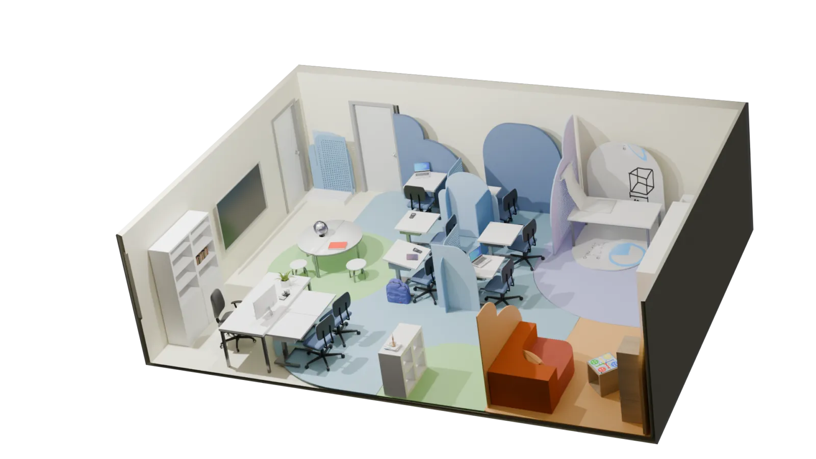 Lernen ist ein stetiger Prozess, der mit Höhen und Tiefen verbunden ist. Ausgehend von einem bereits bestehenden Klassenzimmer, soll das Raumkonzept Schüler:innen in diesem Prozess unterstützen. Durch modulare Raumelemente können verschiedene Zonen entstehen, die den Raum je nach den Bedürfnissen der Lernenden und Lehrenden neu strukturiert. Durch die flexiblen Raumelemente und Wände können Lernmedien je nach räumlicher Situation in einen neuen Kontext gebracht werden. Das Projekt soll den Schülern die Möglichkeit bieten, zwischen verschiedenen Medien wählen zu können, um ihre Lernziele mit Neugier und Freude erreichen zu können.