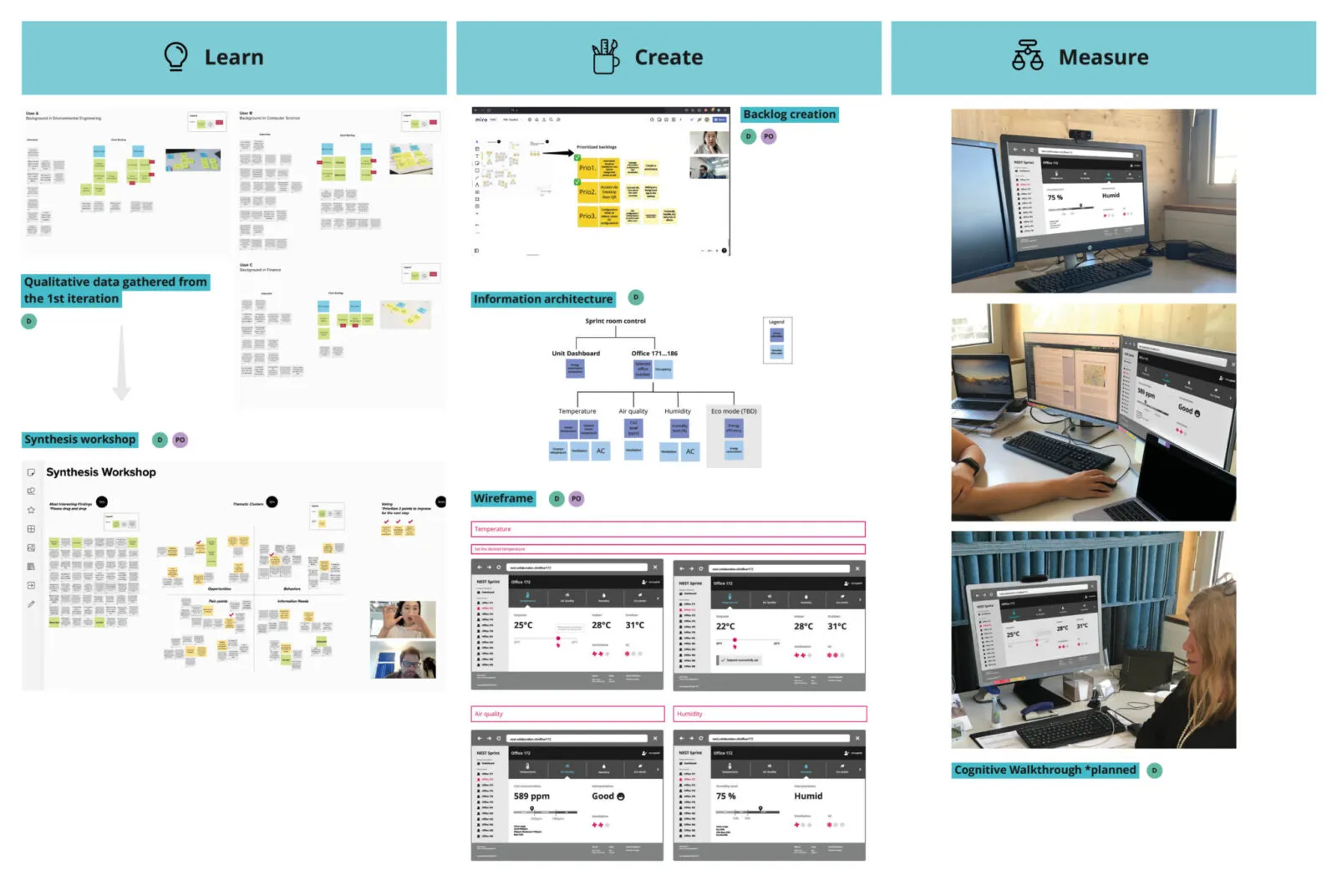 Most building innovation is heavily driven by technology, while human desirability is often overlooked or not explored in design research. This practice has generated a challenging gap between building innovation and user acceptance. In this context, the project proposes an MDP (Minimum Desirable Product) framework and collaborative toolkit for technology-driven research institutes and companies with little to no experience working with design research. The aim of the MDP framework and toolkit is to take desirability into account during the R&D of building innovation. Adapted from Eric Ries‘ Build-measure-learn cycle, the MDP framework illustrates what needs to be considered in each phase in order to improve a technical prototype towards the minimum desirable product, based on multiple sprints and the continuous discovery mindset. Additionally, the MDP toolkit helps the core team plan, track and communicate design activities to facilitate the MDP approach.