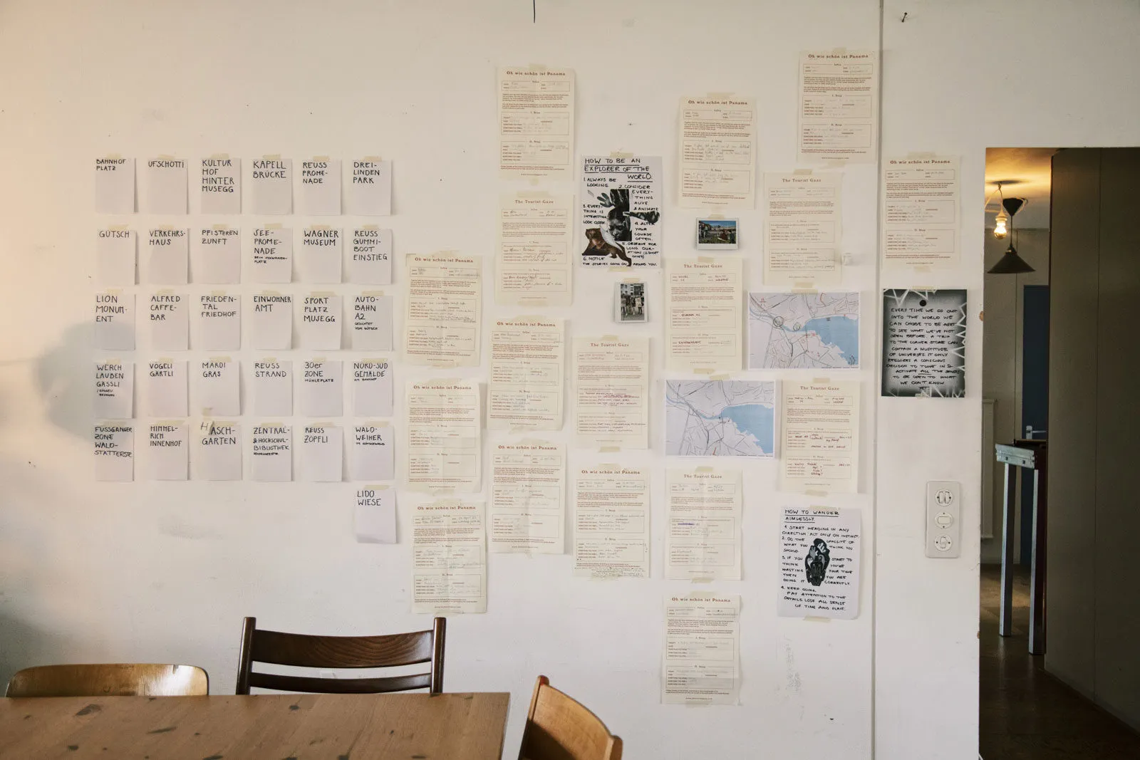 She applied her concept to the city of Lucerne, where the workshop took place nine times. The participants collaboratively came up, documented, and tested alternative city tours, which then resulted in a radical, new city guide for Lucerne. The project comes to show how the practice of collaborative gazing can contribute to a decelerated, non-passive way of traveling and co-existing.