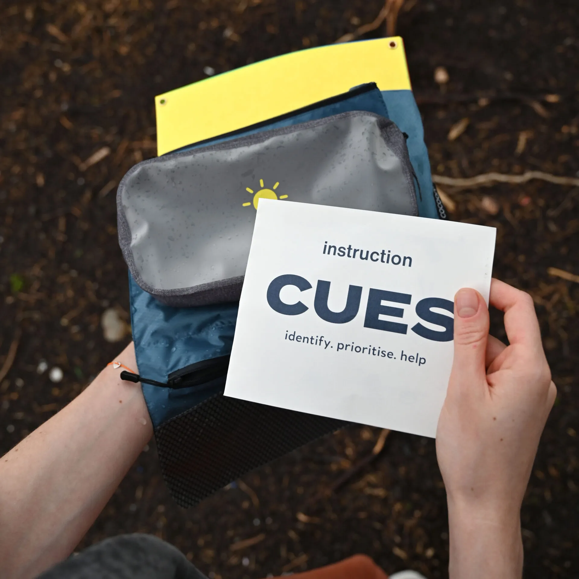 Locals use the toolkit by placing the colorful plates on the ground to signal the help needed. Each color has a specific meaning. First responders use drones to collect data from affected areas and prioritise where to go.