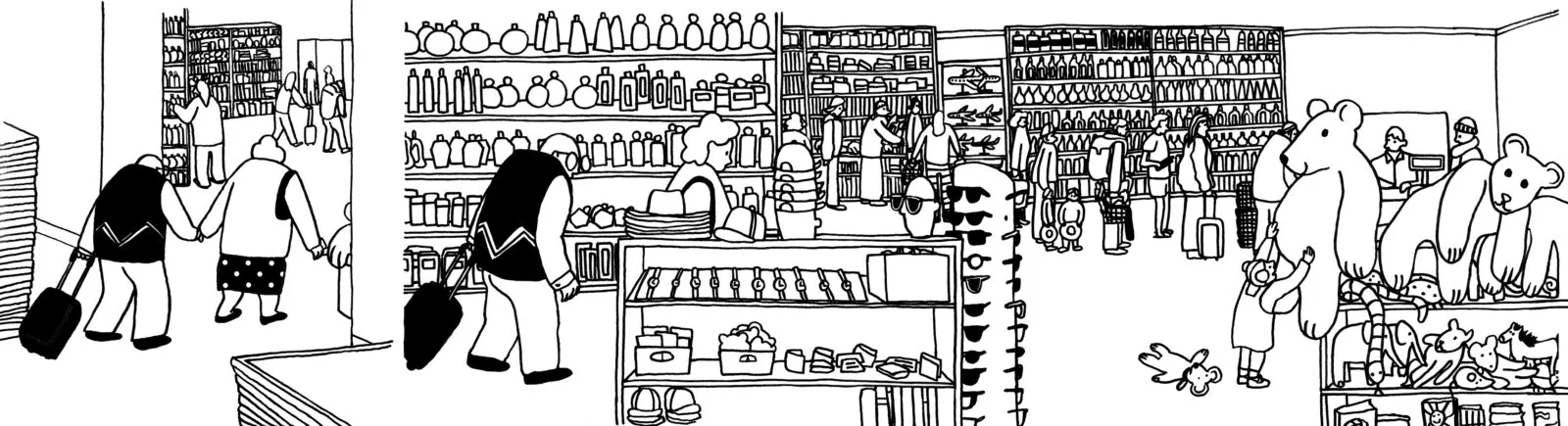 Ein altes Paar hat eine aufregende Reise vor sich. Die letzten Flugzeugferien liegen bereits viele Jahre zurück. Wir begleiten sie durch den Flughafen, einen Ort, an dem sich über die letzten Jahrzehnte vieles verändert hat und dessen moderne Technik in jeder Ecke lauert. Die wortlose Geschichte handelt vom Warten und vom Stress, von Verwirrung, vom Beobachten und vom Zusammenhalt.