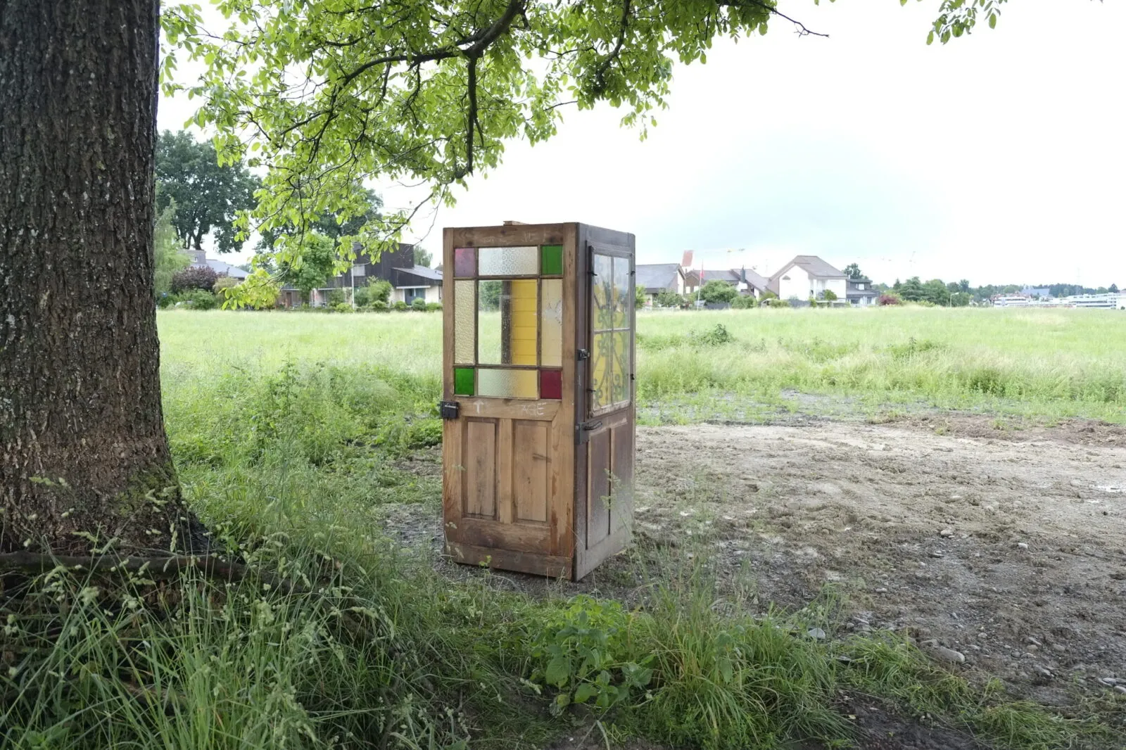 Durch das installative wieder Zusammenbringen originaler Gegenstände aus dem „Gimmermee“ Haus, wie Türen, Wandteile und dem Küchenlicht, wird ein Stück der „Gimmermee“-Atmosphäre vor dem Baubeginn des Neubaugebiets auf dem „Gimmermee“ Bauplatz noch ein letztes Mal für die Künstlerin und die Gemeinde Rothenburg erlebbar gemacht.