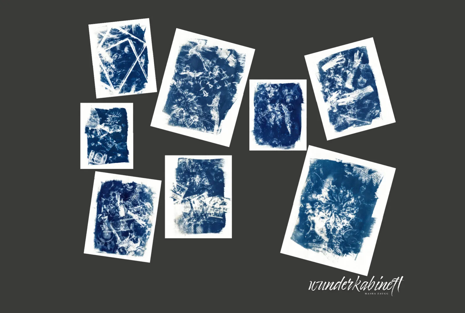 Acht Cyanotypien auf Aquarellpapier, 40 x 30 cm