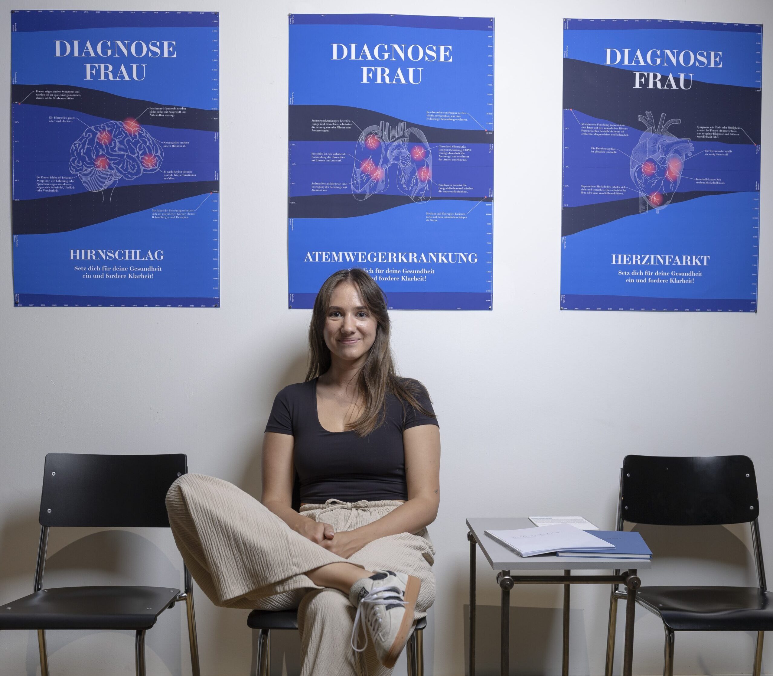 In ihrer Abschlussarbeit Diagnose: Frau entwickelte sie ein Serie datenbasierter Informationsposter für Arztpraxen. Zwischen sachlicher Aufklärung und visueller Sensibilisierung schafft sie Raum für Empowerment und macht geschlechterspezifische Ungleichheiten in der Schweizer Gesundheitsversorgung sichtbar.