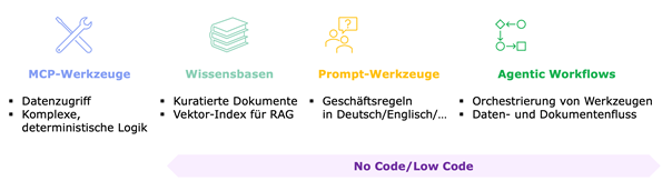 Agentische No Code/Low Code-Werkzeuge; Quelle: Eigene Darstellung