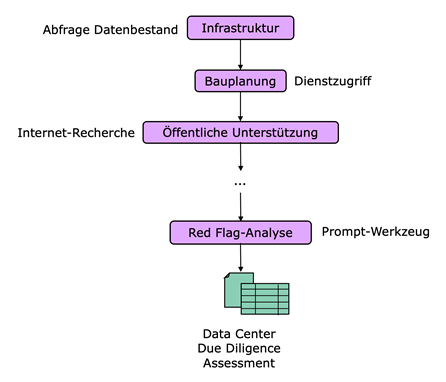 Beispiel: Agentischer Workflow zur Due Diligence bei Data Center-Projekten; Quelle: Eigene Darstellung