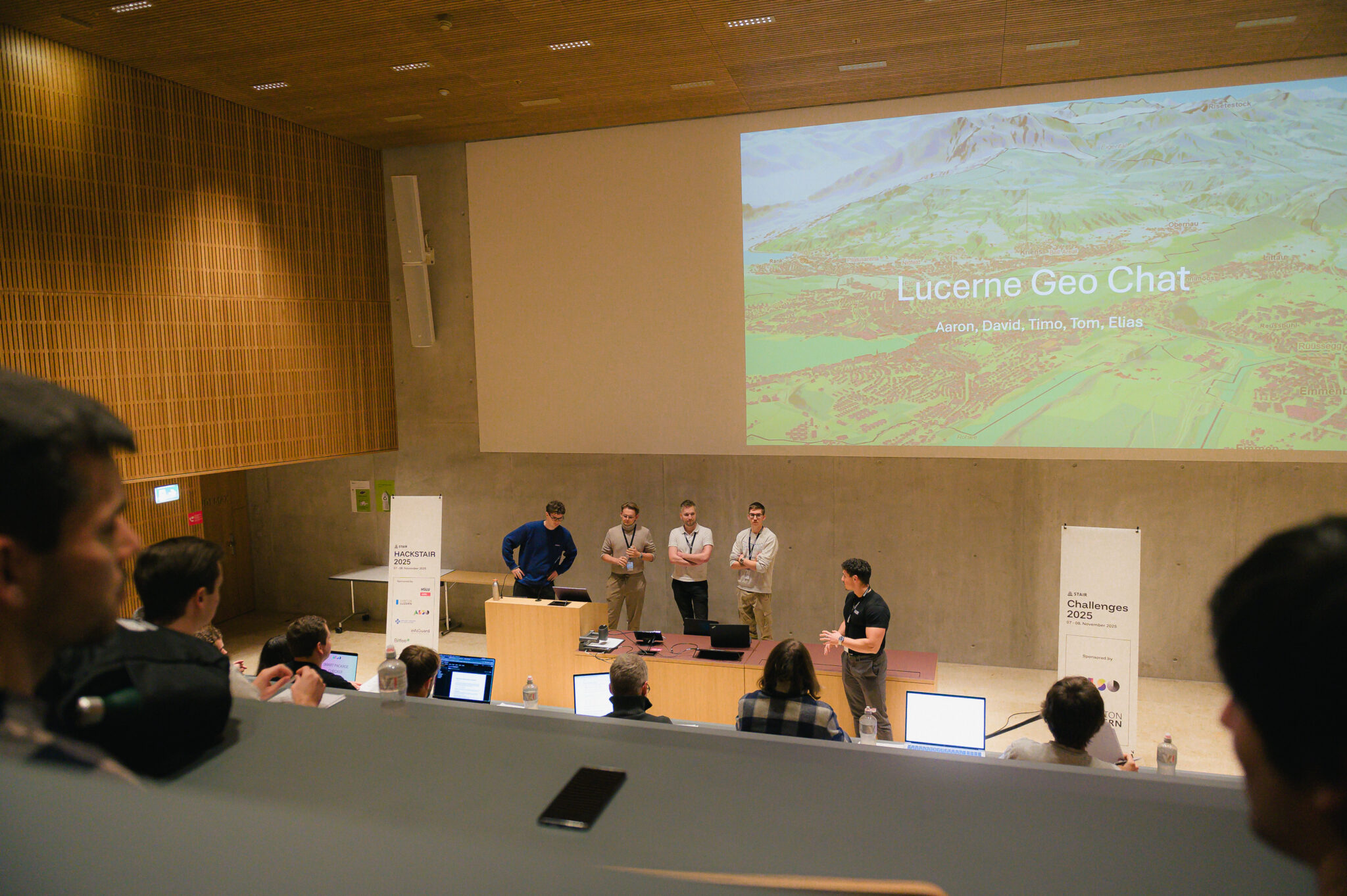 Hier entwickelten die Studierenden einen KI-Assistenten, der die Fragen der Nutzenden mit den passenden Karten und Datensätzen des Kantons Luzern verknüpft. Beide Teams beeindruckten mit innovativen und technisch ausgereiften Ansätzen. Es war eine knappe Entscheidung.